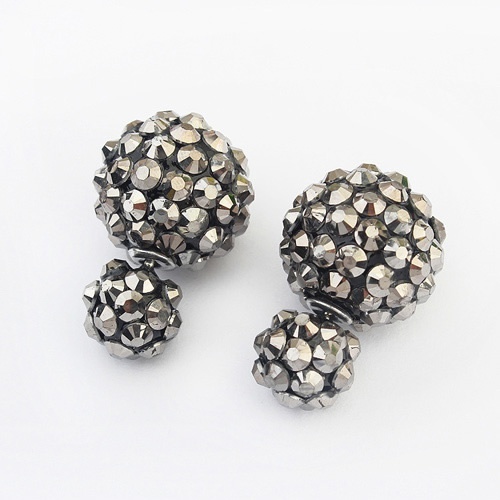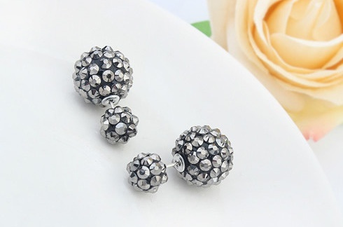 Módní oboustranné náušnice v lesklé šedé barvě.